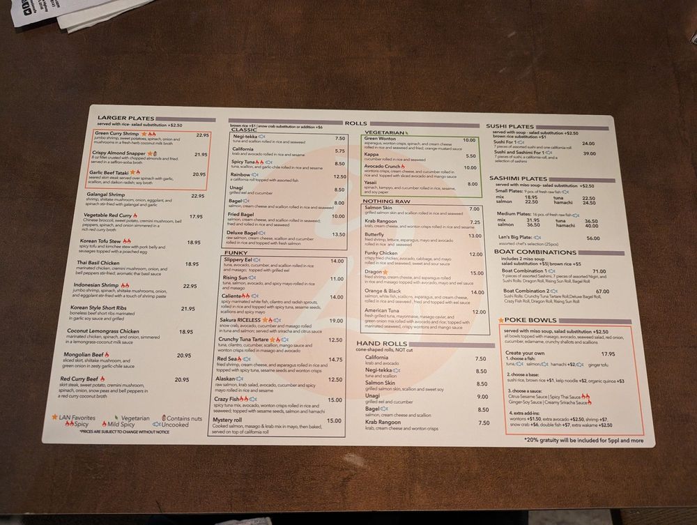 Welcome to Lan Pan Asian Cafe, a sushi bar located in Miami, FL, offering a wide range of Asian-inspired dishes with a modern twist. From agedashi tofu to Asian Nachos, the starters here are a flavorful start to your meal. Vegetarians can indulge in options like fiery spinach or kelp noodle salad. The special Tonkotsu Ramen is a must-try, with its authentic 48-hour pork broth and tender Sakura pork belly. The restaurant offers a variety of utilities, including delivery, catering, and outdoor seating. As a reviewer, I can confidently say that Lan Pan Asian Cafe is a hidden gem for those craving delicious Pan-Asian cuisine in a vibrant and inviting atmosphere.